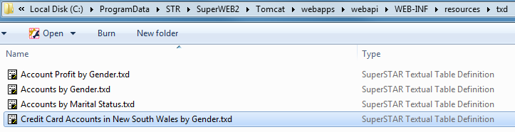 This section describes how to save TXD system tables on disk for use in SuperWEB2. It is also possible to upload these TXD files to the user data repository through SuperADMIN. This makes the table available as a shared table, and is the recommended approach for adding tables to SuperWEB2. See Configure Folders and Shared Tables for more information.