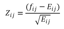 Under an assumption of no association, either homogeneity or independence, the expected cell value (Eij ) is deduced from the relevant row, column, and wafer totals: