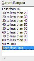 - Use the < and <= radio buttons to select whether the range includes the start and end points.