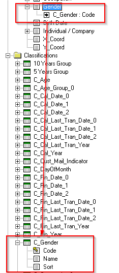 For example, in the sample Retail Banking database there is a link between the Gender column in the Customer fact table (which contains values like M and F) and the C_Gender classification table (which contains the descriptions of those values, such as "Male" and "Female").