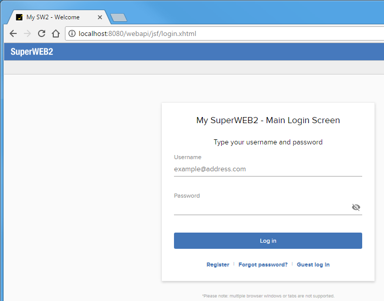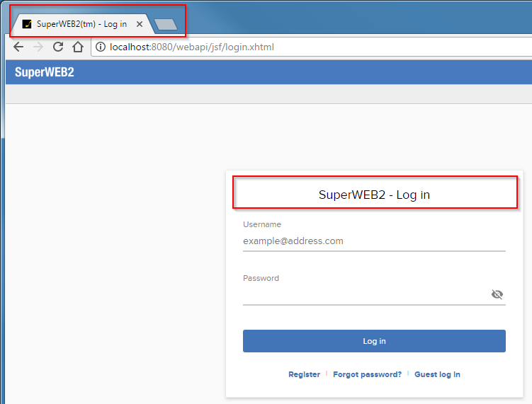 You can modify most of the text that appears in SuperWEB2 to suit your requirements. This section demonstrates just one example by showing how to change the labels that appear in the browser/tab title and on the login screen: