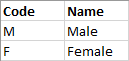 • The Code column must be the primary key and unique identifier for the classification type. It is the link between the fact table and the descriptions in the classification table. For example: "M" or "F".