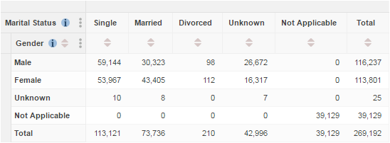 By default, the /table endpoint returns a "dense cube". That means that it returns every value, even if the value is null or 0.