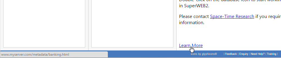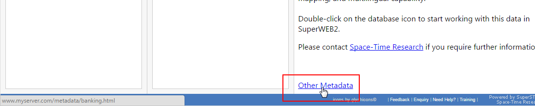 Once your metadata database has been set up with the appropriate link columns, you need to populate the links in the db_domain table. SuperWEB2 will automatically display the link at the bottom of the data catalogue if it exists for the selected dataset and language.
