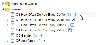 In this example, questions V1 to V4 have the same possible answers. The order in which the questions are specified in the DATA LIST section is used to determine which questions are consecutive and are therefore implied by V1 TO V4.