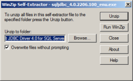 Download the latest version of the Microsoft JDBC Driver for SQL Server from https://www.microsoft.com/en-au/download/details.aspx?id=11774. The download file will be an executable with a name similar to sqljdbc_4.0.2206.100_enu.exe
