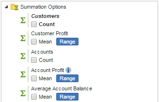 Default Behaviour (Sum Options Available):