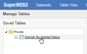 Select Manage Tables from the top-right menu and check that your saved table displays in the list: