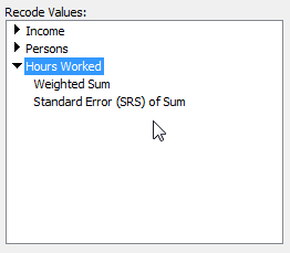 - In the Fields window, double-click the Summation Options. The Define Recode window displays.