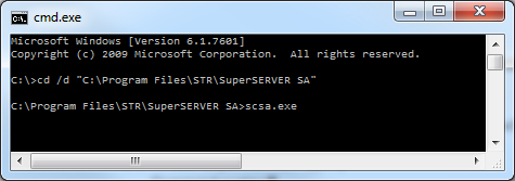 Go to the Windows Start Menu and select SuperSTAR > SuperSERVER SA > SuperSERVER. ![]() | Open Windows Explorer and browse to the SuperSERVER program files directory (in a default installation this will be C:\Program Files\STR\SuperSERVER SA), then double-click scsa.exe: ![]() | Open a command prompt and change to the SuperSERVER program files directory, then execute scsa.exe: ![]() |