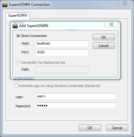Click OK to close the SuperADMIN Connection window.