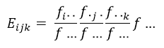 - f represents a cell count, with the dimensionality of the resident cube dictated by the number of subscripts. For example, fij comes from a 2-dimensional cross tabulation of i rows and j columns; whereas fijk has i rows, j columns, and k wafers.