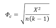 where k is the smaller of the number of columns or rows and n is the total, independent contributor count. This value depends on the size and shape of the original table. To some extent it can be standardised by reporting Cohen’s w .