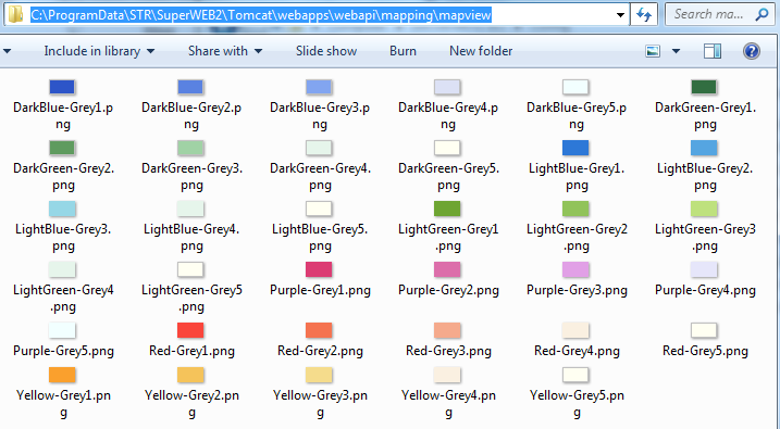 If you make any changes to the swatch colours, rename any of the swatches, or add new swatches, then you also need to update the PNG images in <tomcat_home>\webapps\webapi\mapping\mapview.