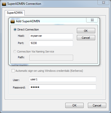 Select File > SuperADMIN Connection. The SuperADMIN Connection window displays.