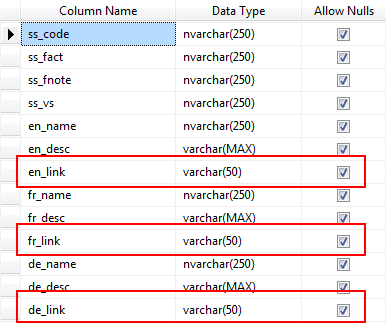 db_domaintable so that it includes the link columns. These must have the same column name as the values you set for thess_columnin themeta_<repository_id>table. For example: