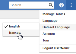 | In SuperWEB2, you can use the option on the menu to select the dataset language: