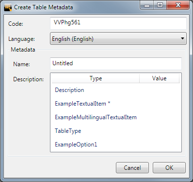 - Create a new table in your metadata database. You can give this table whatever name you like. For example, you might call it