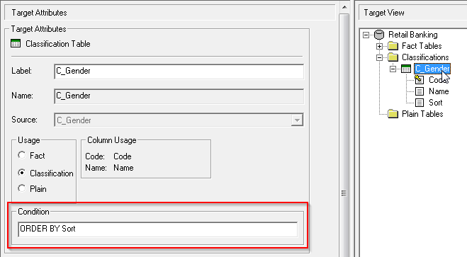 Open the Target Attributes tool and add a SQL ORDER BY clause to this classification table: