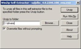The driver JAR files themselves are unpacked under a directory that depends on the language you chose for the download. For example, here the directory is enu, as an English download was chosen.
