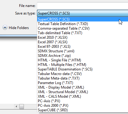 Order=SuperCROSS (*.SCS);ToText;Comma-separated Table (*.CSV);Tab-delimited Table (*.TXT);SaveExcel;SaveSdmx;SaveHTML;