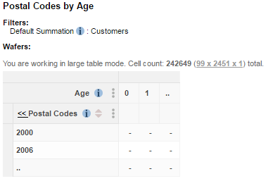 previewDataSizesetting. This controls the number of cells to show at each level in the table when SuperWEB2 is in large table mode.By default, this is set to 3 (as shown here, SuperWEB2 displays the first two values of the field and .. to indicate that there are more items at this level):