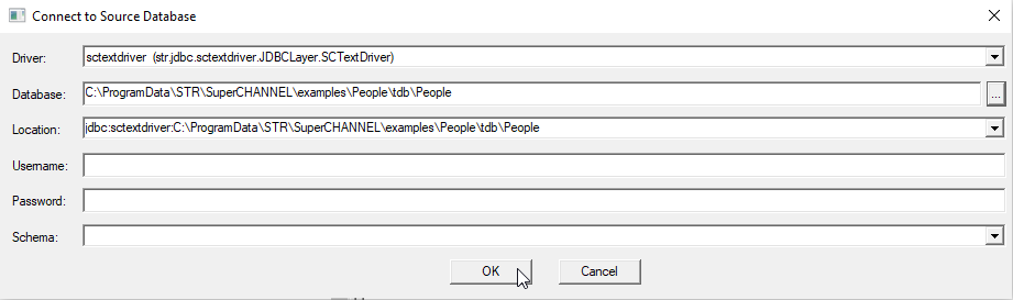 1. In SuperCHANNEL, select File > Connect to Source. The Connect to Source Database dialog displays.