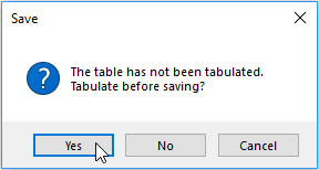 | TXD and Macro-data | The TXD and Flattened Tabular Macro-data formats combined into a ZIP file. As the purpose of this output format is to combine table structure and data into a single file, it does not make sense to save this format without any data. For this reason, if the cross tabulation has not been run, you will be prompted to confirm if you want to tabulate before saving: