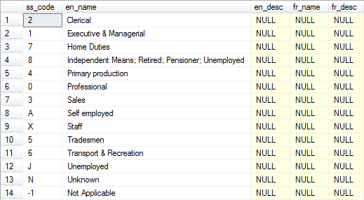 <lang>_namecolumn for each language you want to support. Replace<lang>with the two character language code.Populate the table with the keywords and their translations. See Reference for a full list of keywords/codes that need to be translated.