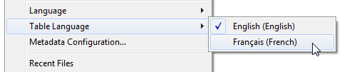 In SuperCROSS, you can use the File > Table Language menu to change the table language: