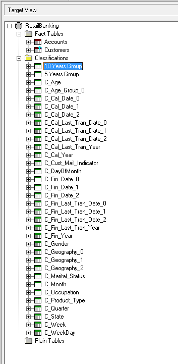 Repeat this step until you have added all the classification tables to the Target View.