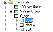 To create these cross tabulation fields we start by creating a reference to the lowest level in the hierarchy (for example we create a link between the fact table column Area and the classification table C_Geography_0, which contains postcodes).