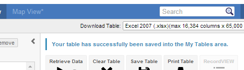 Select Manage Tables from the top-right menu and check that your saved table displays in the list: