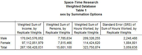 SuperCROSS can be used to tabulate against sample surveys where each record in the sample surÂvey has one or more associated weights. Population estimates are calculated by summing these weights, and estimates of means are also computed with these weights. The actual weight values are computed outside the SuperSTAR system, and are loaded into a SuperSTAR database via SuperCHANNEL.