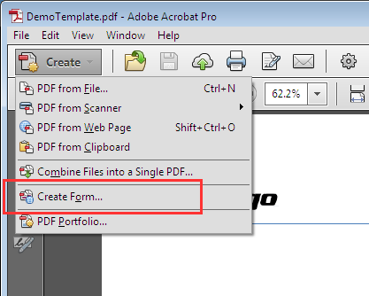 Choose the option to create a form (the exact option will depend on the version of Acrobat you are using):