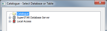 If your SuperSERVER connection is not configured, then the Catalogue - Select Database or Table window will only show options for Catalogue and Local Access: