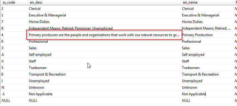 The following screenshot from SQL Server shows some additional information added to the description field for one of the values of Occupation: