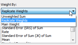 - In the Weight By drop-down list, select the type of weight you want to use with the selected summation options.