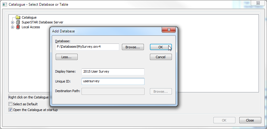 In SuperCROSS, select File > New to open the Catalogue - Select Database or Table window, then select your SXV4 database.