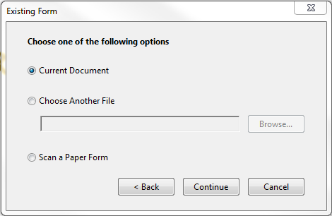 If prompted, choose to create a form From Existing Document: