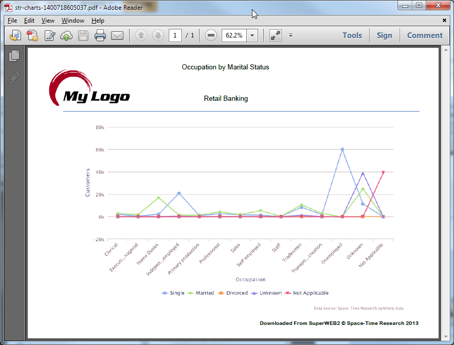 Users can download PDFs from Graph View and Map View. SuperWEB2 is supplied with a default template for the downloads, but you can replace this with your own version. You can either use the same PDF template for both graph and map downloads, or use a different template for each.