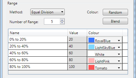 | Number of Range | Enter the number of ranges (the number of different colours) you want to show. |
