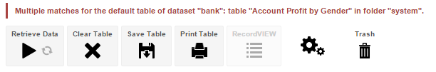 If there is no table in the specified folder that matches the specified tableName (or the current user does not have at least read permission over the folder), then SuperWEB2 will display a warning message when opening the dataset:
