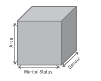 When represented by a data cube, each field is represented in its own unique dimension that can be referenced by an integer value: