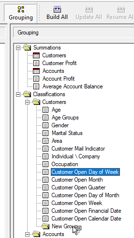 • Hierarchy - Summation options and fields will be grouped together within the Summations and Classifications groups based on the fact table they belong to.