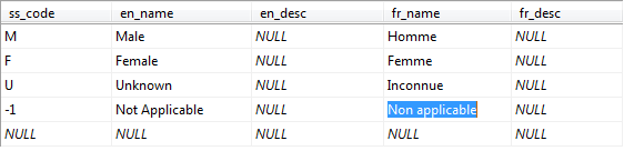 The following screenshot from SQL Server shows the addition of some French translations: