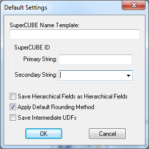 Apply Default Rounding Method Select this option to specify that tables created from the resulting SuperCUBE should have rounded data.