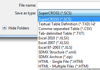 Order=SuperCROSS (*.SCS);ToText;Comma-separated Table (*.CSV);Tab-delimited Table (*.TXT);SaveExcel;SaveSdmx;SaveHTML;