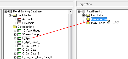 Repeat this step until you have added all the classification tables to the Target View.