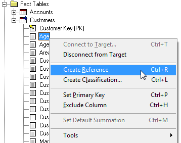 Right-click the column and select Create Reference.